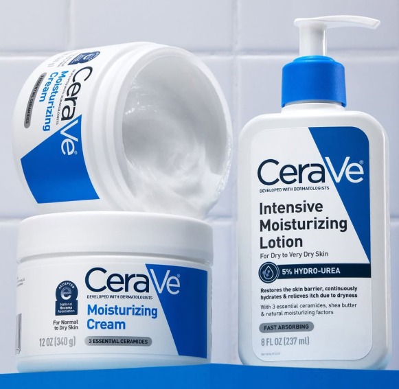 CeraVe Intensive Moisturizing Lotion (For Dry to Very Dry Skin): Formulated with 5% Hydro-Urea, this intensive lotion quickly restores the skin barrier and provides continuous hydration while relieving itch and irritation due to dryness. Its fast-absorbing nature makes it perfect for quick, daily use.
